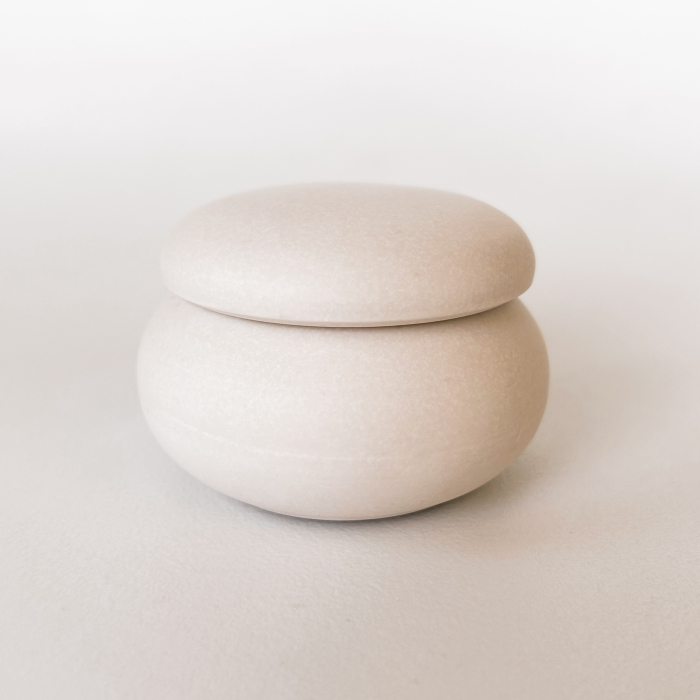 Această cutie decorativă este realizată manual din Jesmonite, un material modern, durabil, ecologic și rezistent la foc, fiind o opțiune sigură pentru interior. Fiecare piesă este turnată cu grijă în culoarea sa naturală, păstrând textura fină și aspectul minimalist specific materialului.