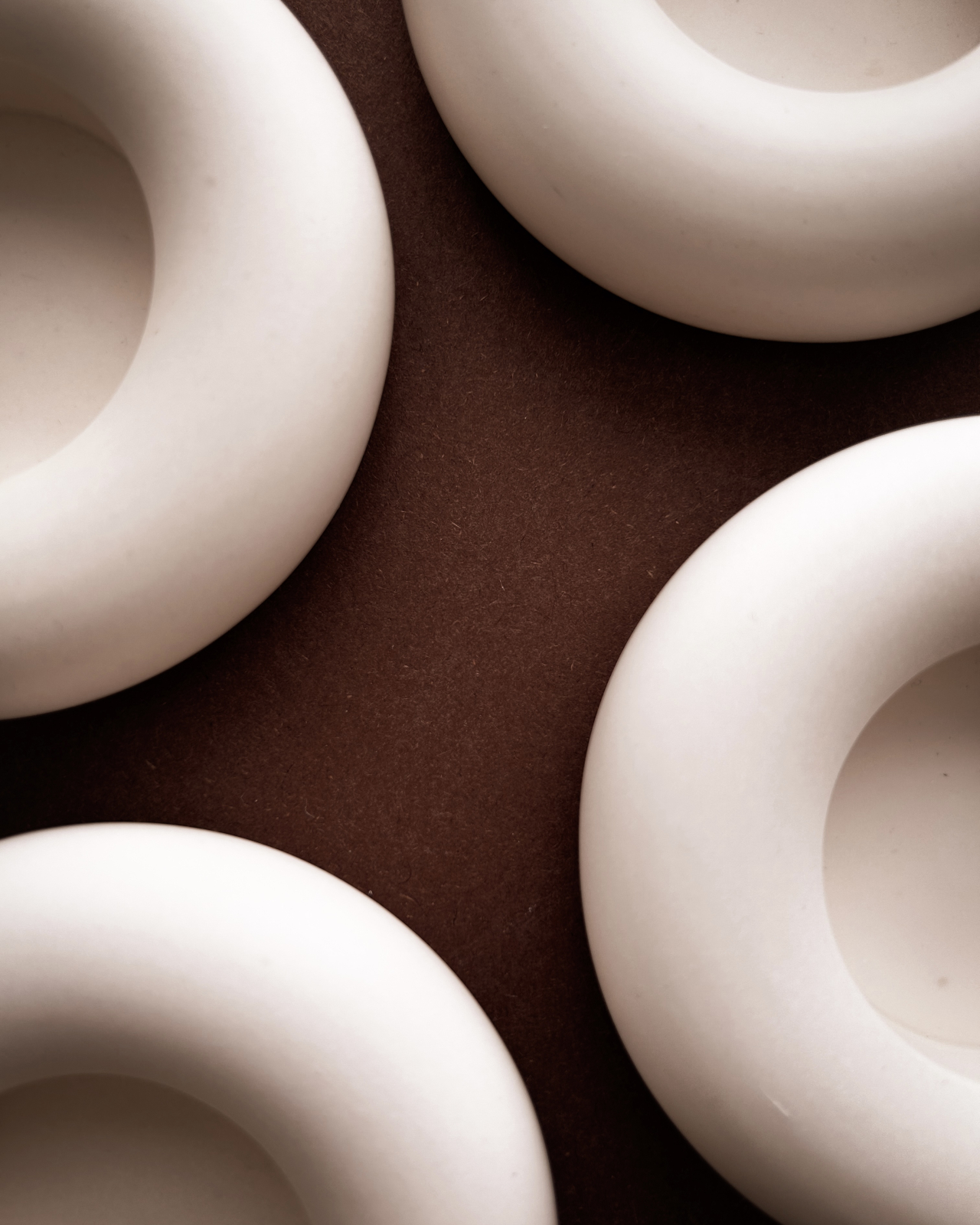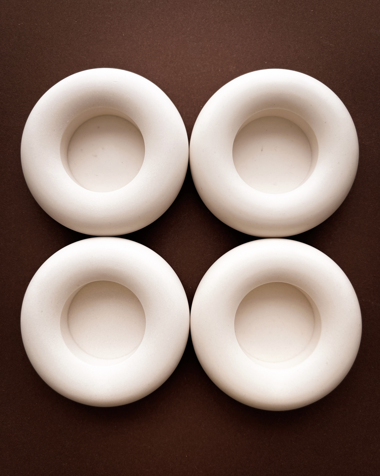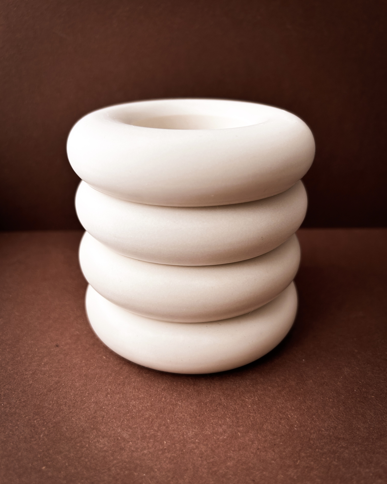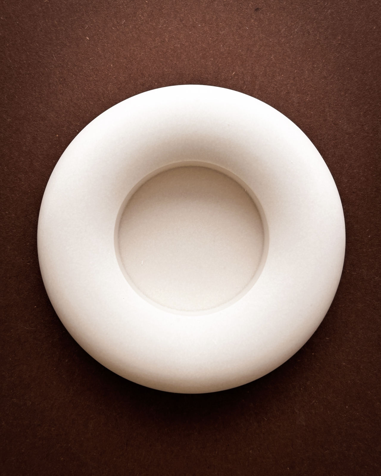 Acest suport decorativ este realizat manual din Jesmonite, un material modern, durabil, ecologic și rezistent la foc, fiind o opțiune sigură pentru interior. Fiecare piesă este turnată cu grijă în culoarea sa naturală, păstrând textura fină și aspectul minimalist specific materialului.