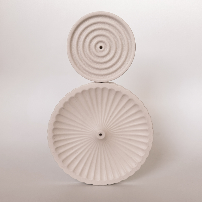 Acest set decorativ este realizată manual din Jesmonite, un material modern, durabil, ecologic și rezistent la foc, fiind o opțiune sigură pentru interior. Fiecare piesă este turnată cu grijă în culoarea sa naturală, păstrând textura fină și aspectul minimalist specific materialului.
