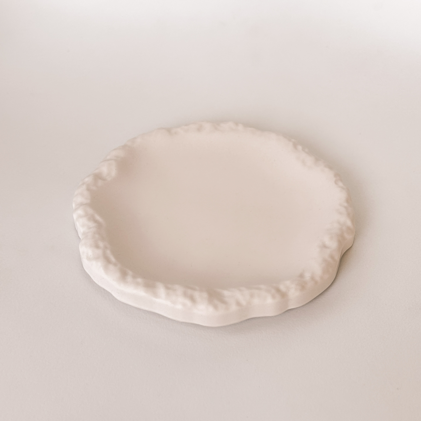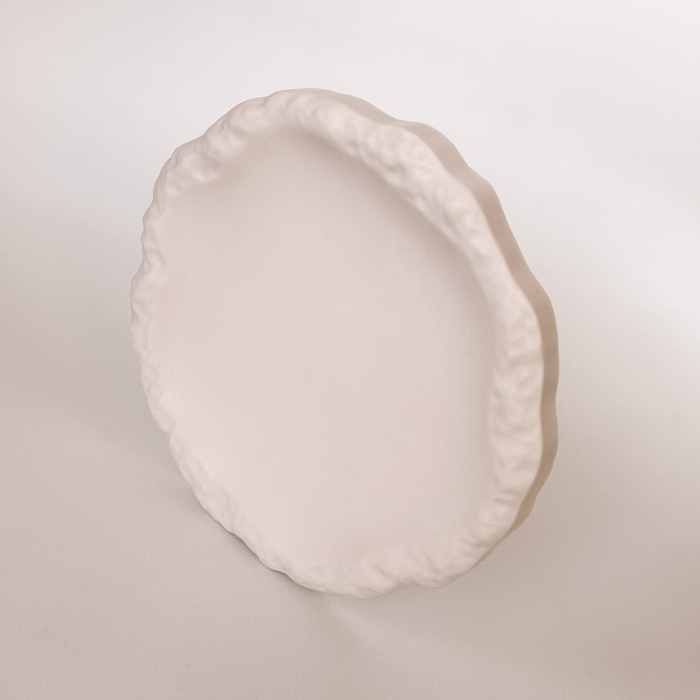 Această farfurie decorativă este realizată manual din Jesmonite, un material modern, durabil, ecologic și rezistent la foc, fiind o opțiune sigură pentru interior. Fiecare piesă este turnată cu grijă în culoarea sa naturală, păstrând textura fină și aspectul minimalist specific materialului.